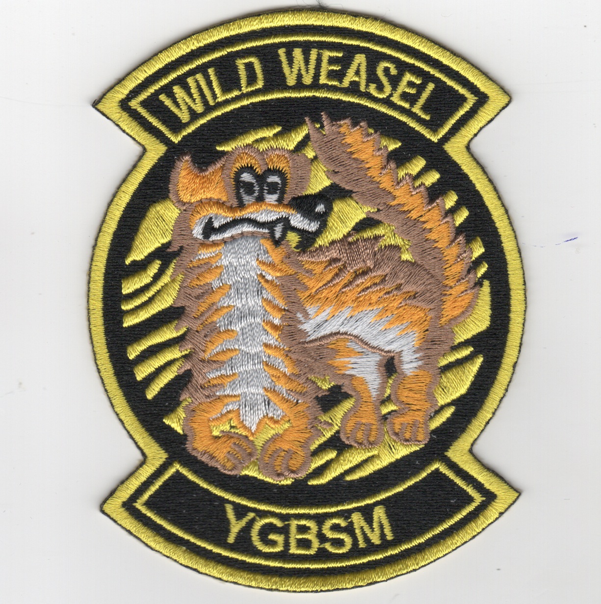 Wild Weasel is a code name given by the United States Armed Forces, specifically the US Air Force, to an aircraft, of any type, equipped with radar-seeking missiles and tasked with destroying the radars and SAM installations of enemy air defense systems. “The first Wild Weasel success came soon after the first Wild Weasel mission 20 December 1965 when Captains Al Lamb and Jack Donovan took out a site during a Rolling Thunder strike on the railyard at Yen Bai, some 75 miles northwest of Hanoi.” The Wild Weasel concept was developed by the United States Air Force in 1965, after the introduction of Soviet SAM missiles and their downing of U.S. strike aircraft over the skies of North Vietnam. This mission was flown by the F-4, F-100, A-4, F-105 and now the F-16 with the F-35 slated to replace them. This is the yellow/black version of that historic patch and does come with velcro attached.