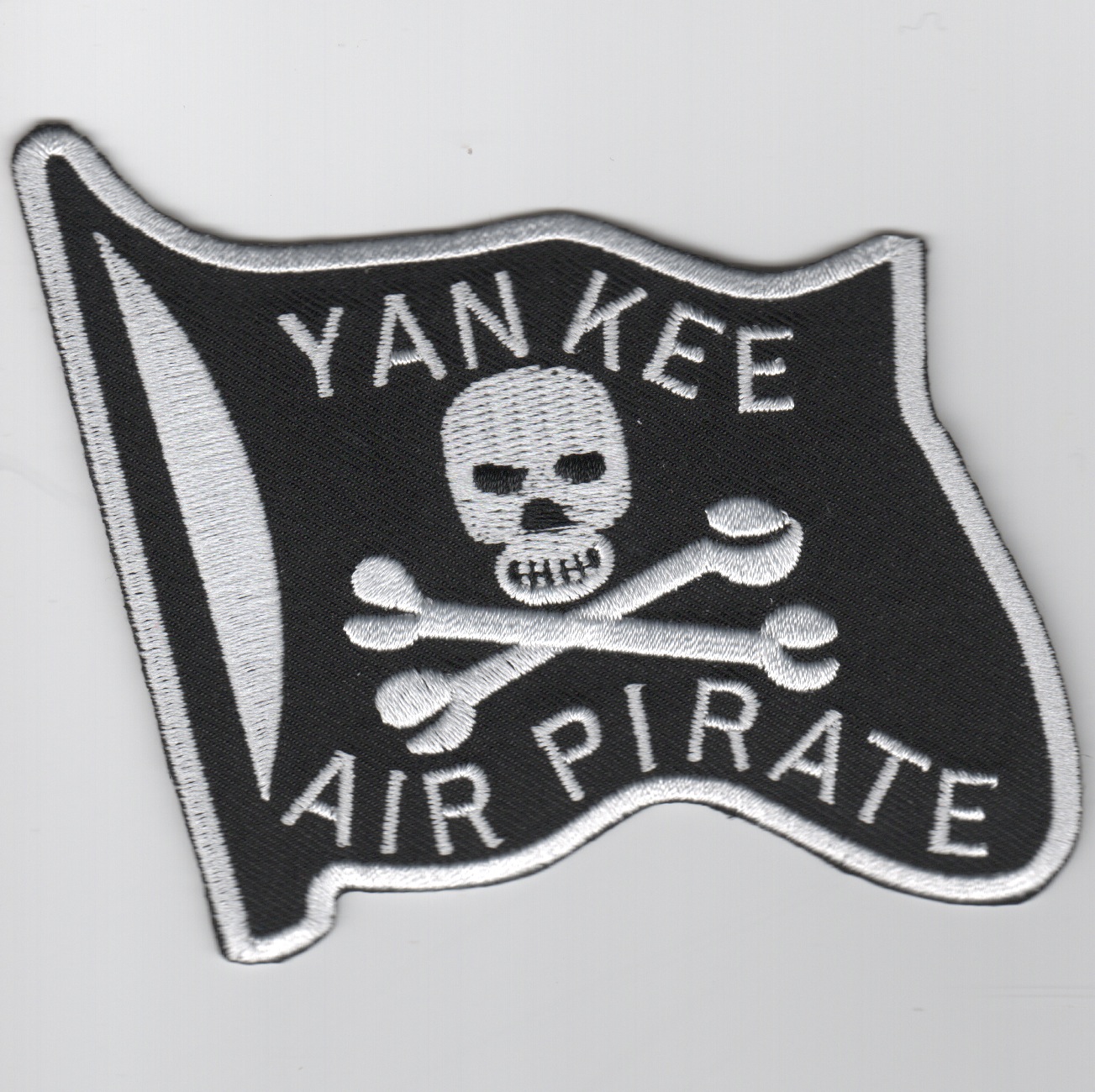 This is the large, black version (pirate colors) of one of the most famous patches in all of military aviation. This is the *Yankee Air Pirate* patch……This patch does NOT come with velcro attached.